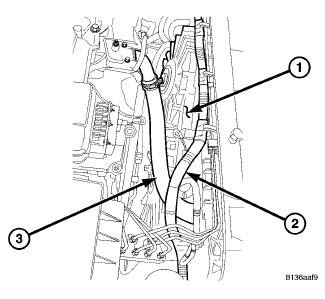 46. Install the upper radiator hose (3).
