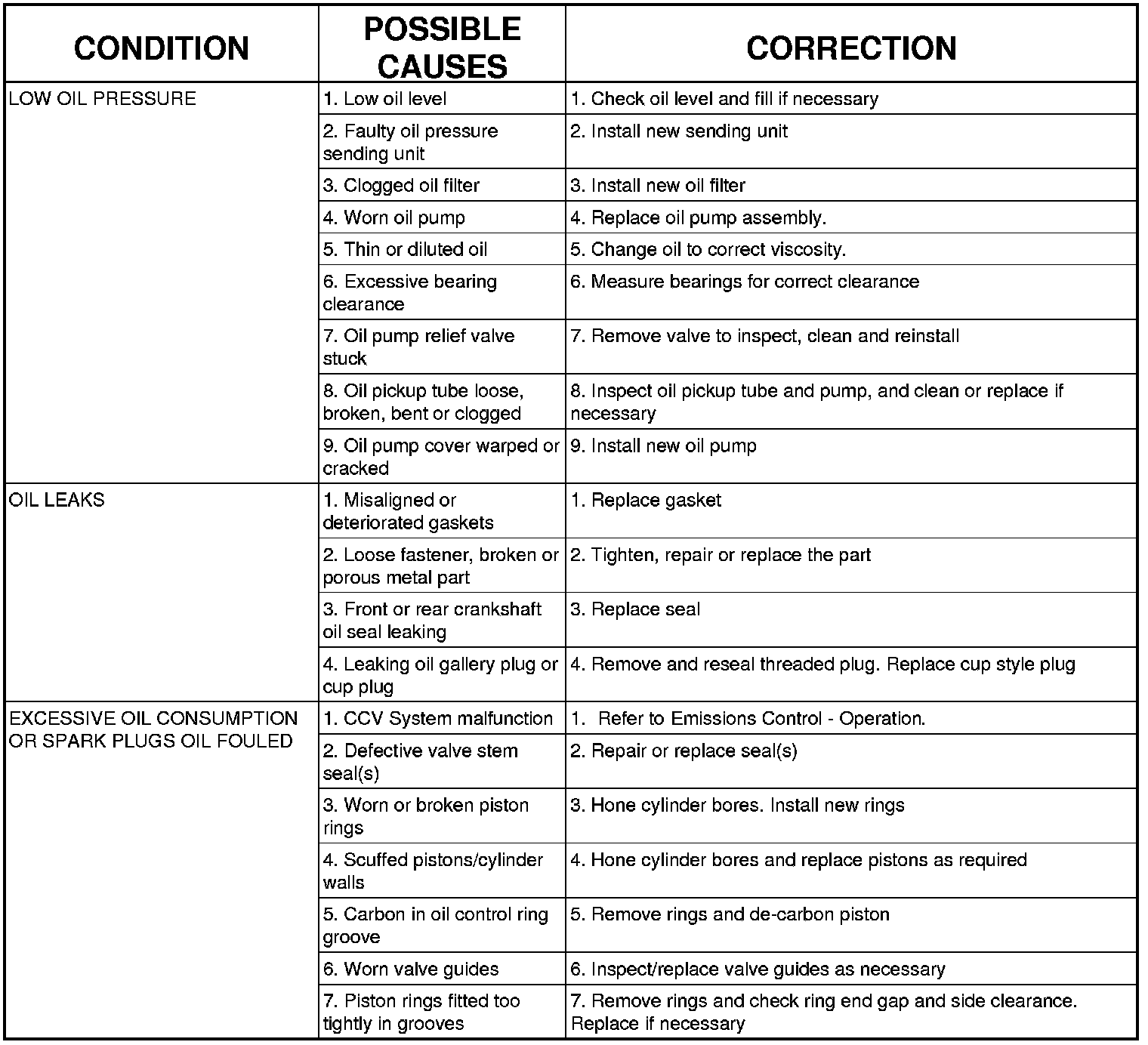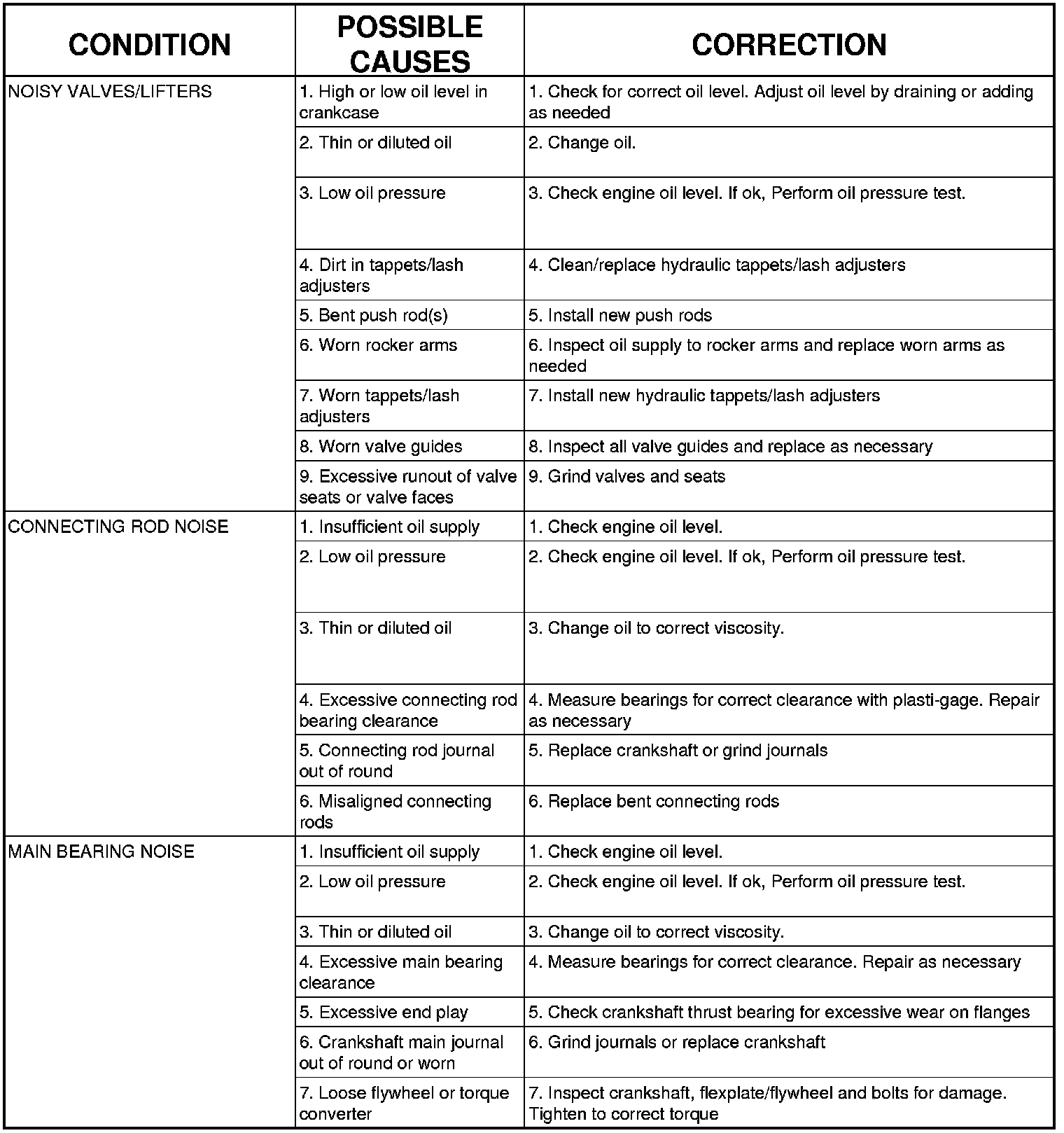 ENGINE MECHANICAL DIAGNOSIS CHART