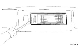 2. Using a trim stick (special tool #C-4755) or equivalent, gently pry out the top (toward windshield) side of the reading lamp lens.