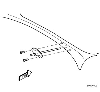 2. Install the screws retaining the spot lamp mounting bracket to the A-pillar and tighten to 33 Nm (29 in. lbs.).
