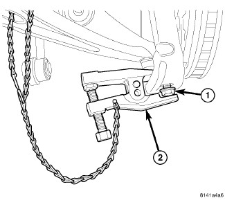 6. Using Puller (2), Special Tool 9360, separate ball joint stud from knuckle.