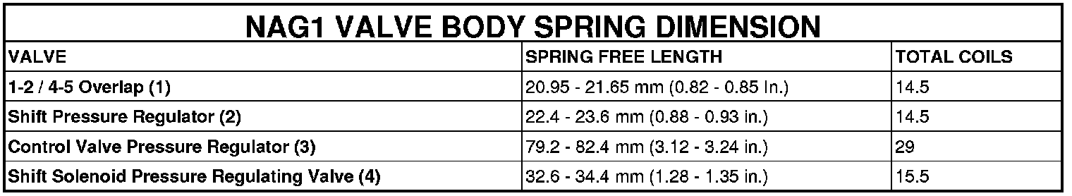 4. Lubricate and install the 1-2 / 4-5 Overlap Regulating Valve, Sleeve, and Piston assembly (1), Shift Pressure Regulating Valve assembly (2), Control Valve Pressure Regulator Valve assembly (3) and Shift Solenoid Pressure Regulating Valve assembly (4) into the valve body.