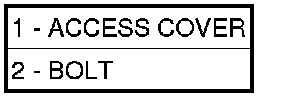 23. Install the torque converter bolt access cover (1) onto the transmission. Install the access cover bolt (2) and tighten to 11 Nm (8 ft.lbs.).