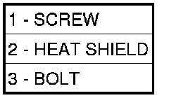30. Position the heat shield (2), if equipped, onto the transmission housing and install the screw (1) and bolt (3) to hold the shield in place.