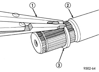 4. Remove large circlip from the interconnecting shaft (3) before attempting to remove outer C/V joint sealing boot.