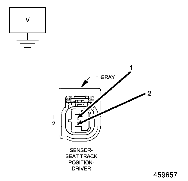 4. Measure the (R263) Driver Seat Position Sensor Voltage circuit voltage between the Driver Seat Position Sensor connector cavity 2 and ground.