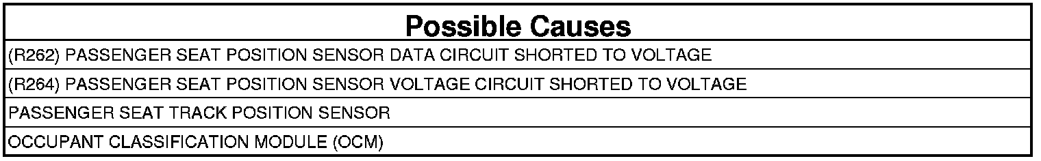 When powered, the CAN Bus ignition status is IGN_RUN, the module is configured for a Passenger Seat Track Position Sensor, and the module has successfully completed the shorted to ground test, the module checks the sensor circuit A/D feedback register for high voltage.
