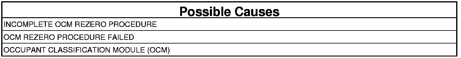 When powered, the Occupant Classification Module (OCM) monitors the memory location containing the calibration flag. The calibration flag will be set (not calibrated) if the on board diagnostics determines that the OCM has not been calibrated, a new OCM is installed, the OCM Rezero Test failed, or the OCM Rezero process was not successfully completed.