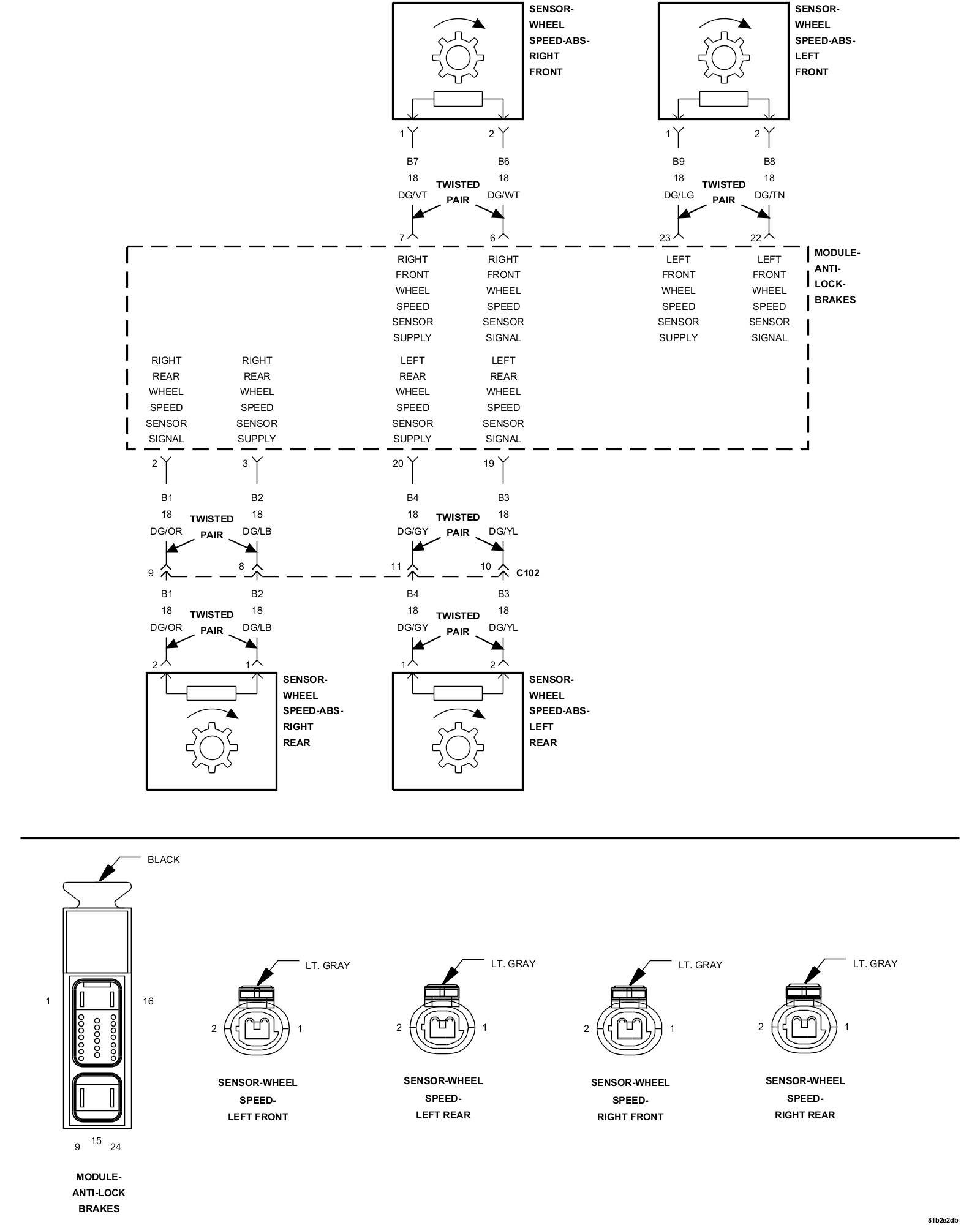 - Repair the (B8) Left Front WSS Signal circuit and the (B9) Left Front WSS Supply circuit for a short together.