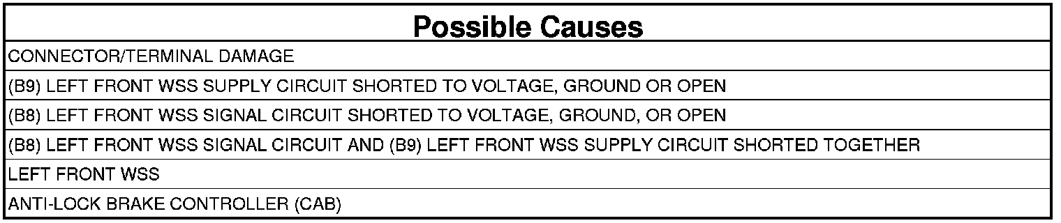 - Repair the (B8) Left Front WSS Signal circuit for an open.