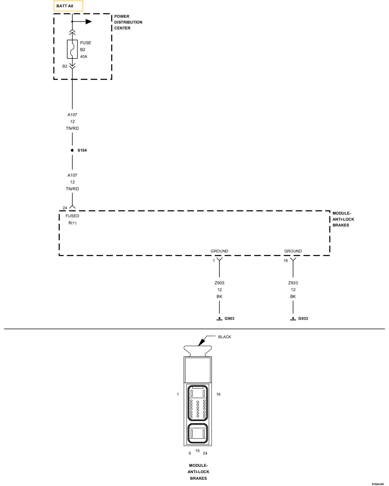 1. Measure the resistance of the (Z903)/(Z933) Ground circuit between the Anti-Lock Brake Controller (CAB) harness connector and ground