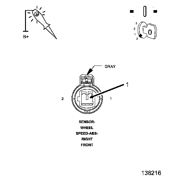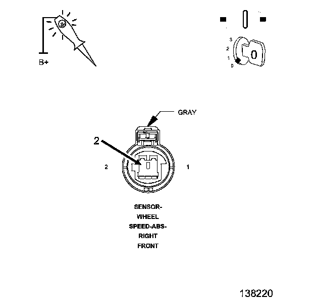 1. Using a 12-volt test light connected to 12 volts, probe the (B6) Right Front WSS Signal circuit.