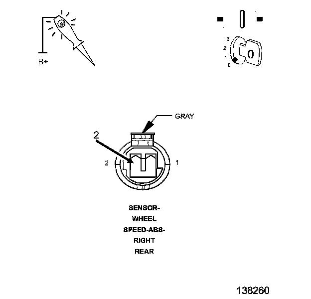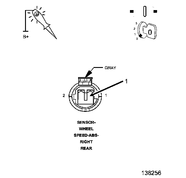 1. Using a 12-volt test light connected to 12 volts, probe the (B1) Right Rear WSS Signal circuit.