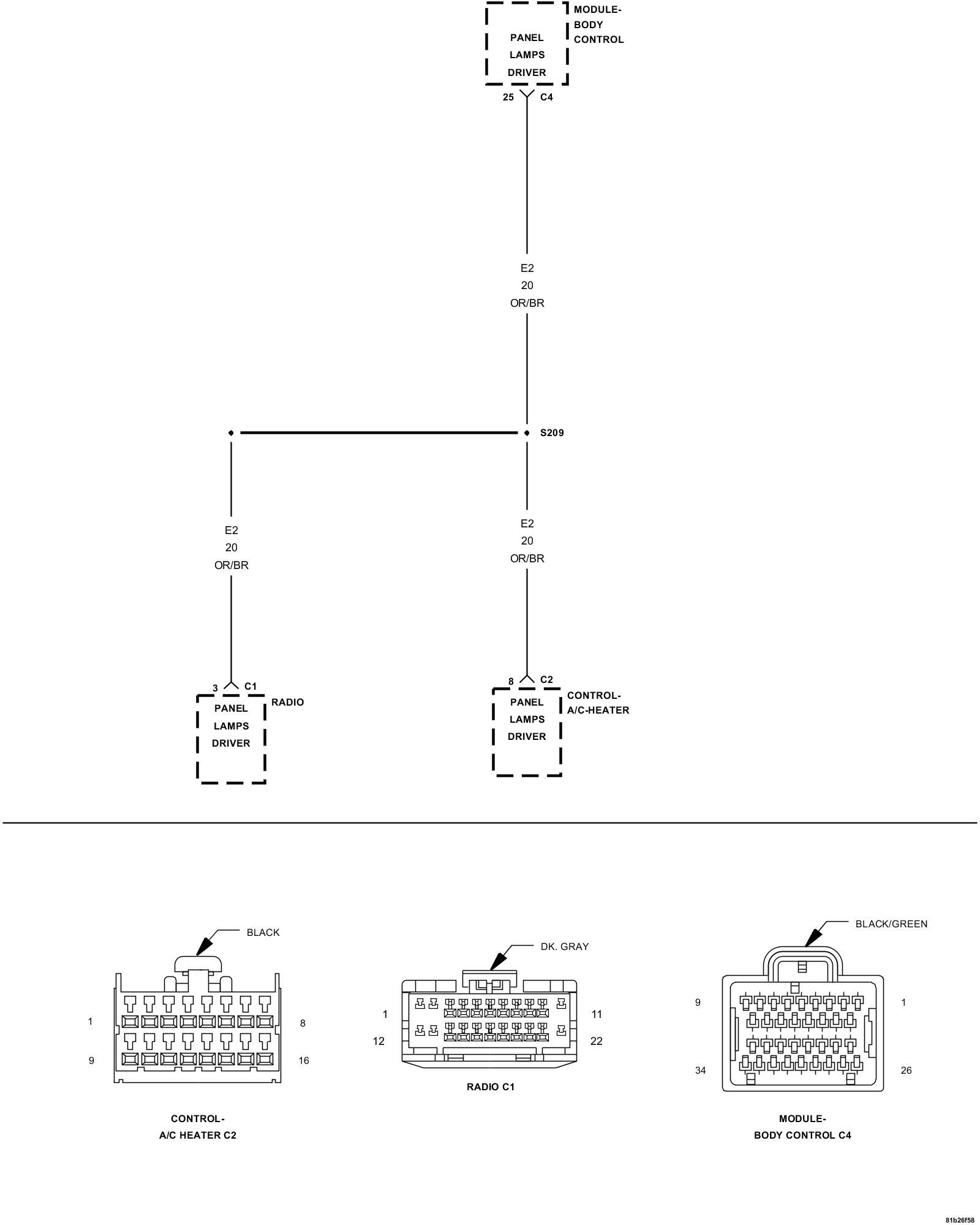 - Repair the (E2) Panel Lamps Driver circuit for a short to ground between the BCM and the Radio.