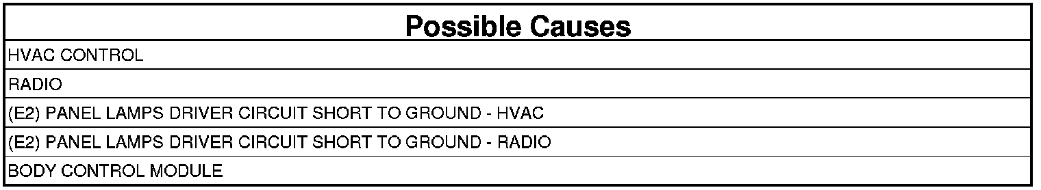 NOTE: The only faults that will set this DTC are the Panel Lamps Dimmer circuits to the Radio and the HVAC Control, or an internal short in the Radio or HVAC Control.