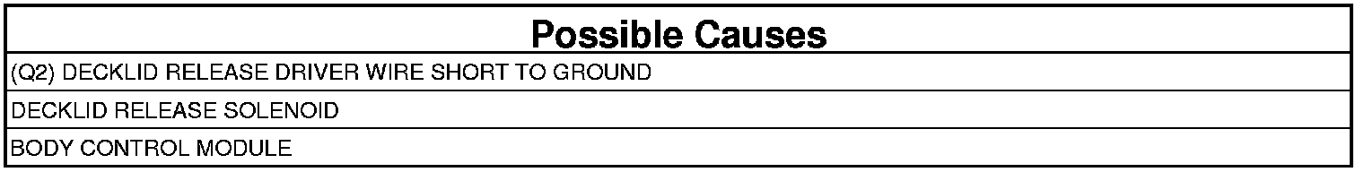 - Repair the (Q2) Decklid Release Driver circuit for a short to ground.