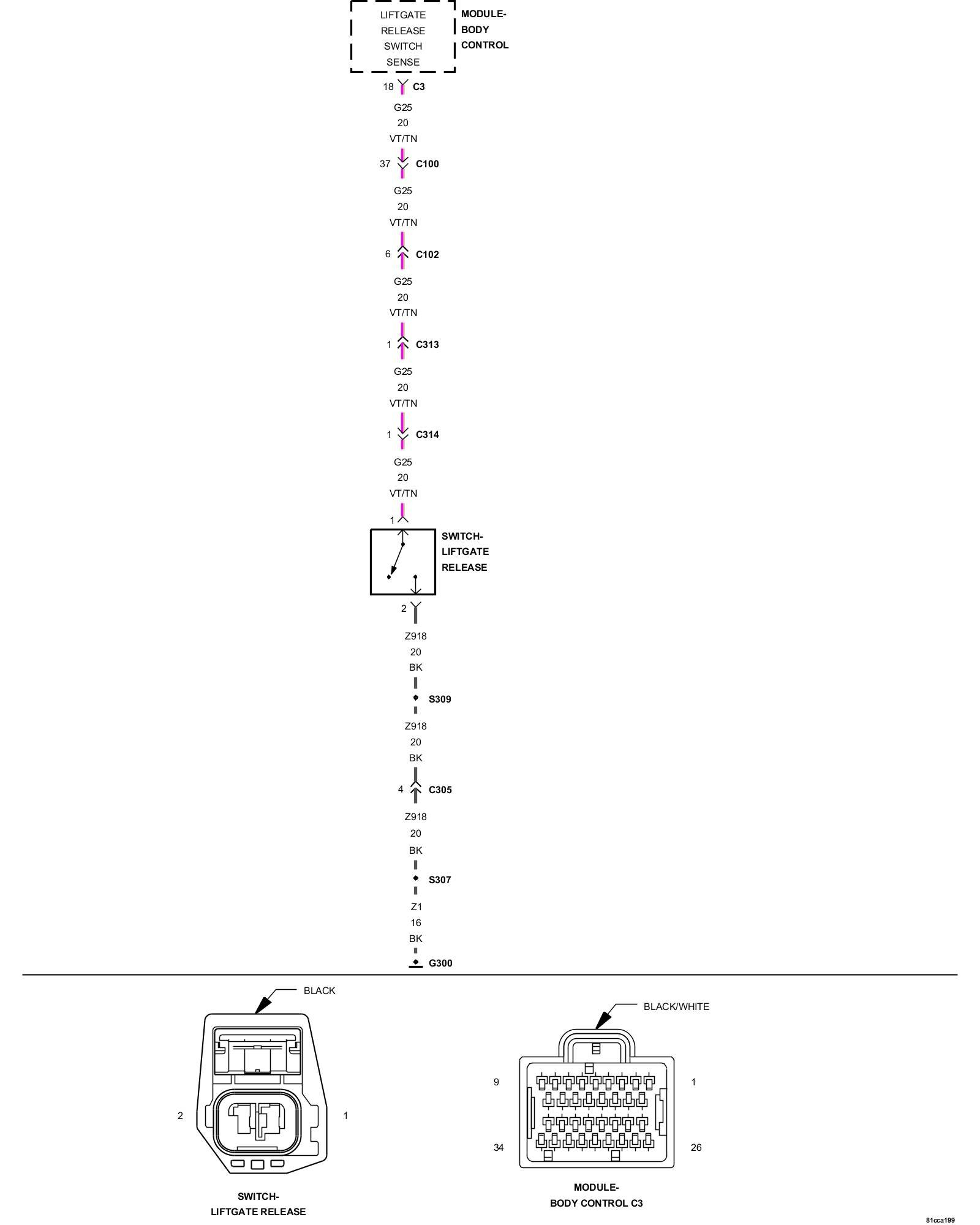 3. (P25) LIFTGATE RELEASE SWITCH SENSE CIRCUIT SHORT TO GROUND.