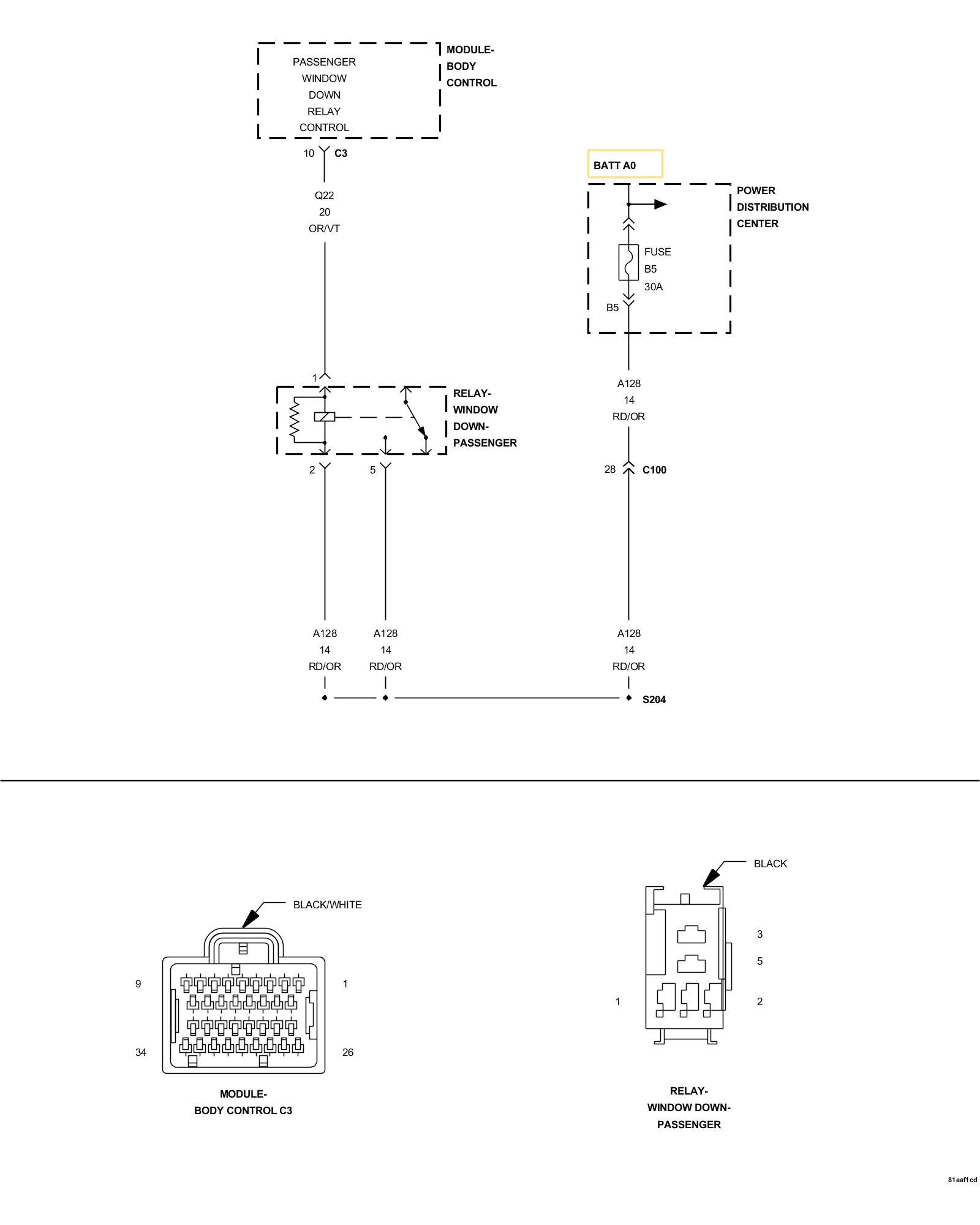 5. (Q22) PASSENGER WINDOW DOWN RELAY CONTROL WIRE OPEN