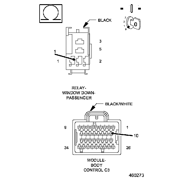 2. Install a substitute Relay in place of the Passenger Window Down Relay.