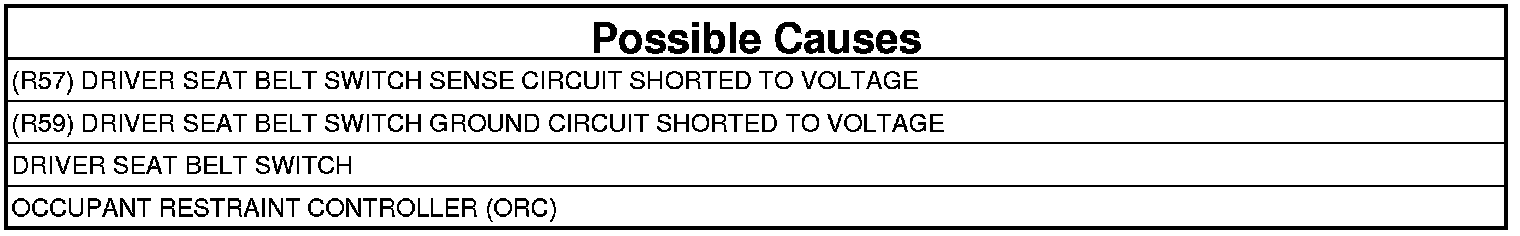 If the ORC detects a short to voltage on the Driver Seat Belt Buckle Switch circuits.