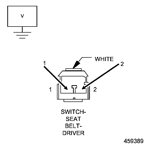 5. Measure the voltage on the (R59) Driver Seat Belt Switch Ground circuit between the Driver Seat Belt Switch connector cavity 2 and ground.