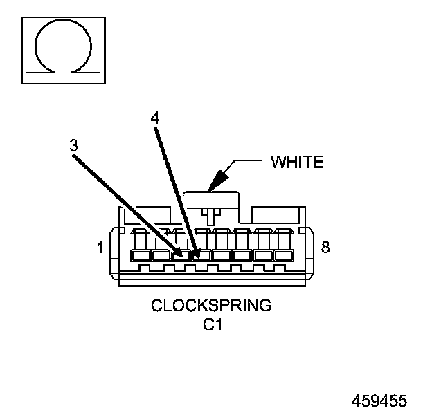 4. Measure the resistance between the Driver Squib 2 Line 1 circuit and the Driver Squib 2 Line 2 circuit at the Clockspring connector cavity 3 and 4.
