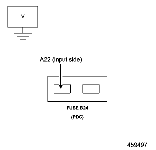 2. Measure the voltage of the (A22) Ignition Switch Output (Run) circuit at the PDC B24 Fuse terminal (input side).