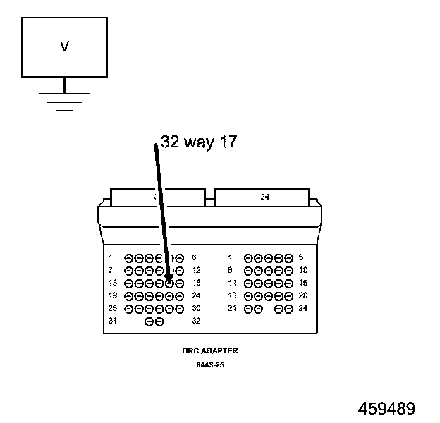 4. Measure the voltage of the (F12) Fused Ignition Switch Output (Run-Start) circuit between the ORC 8443-25 Adaptor cavity 32 way-17 and ground.