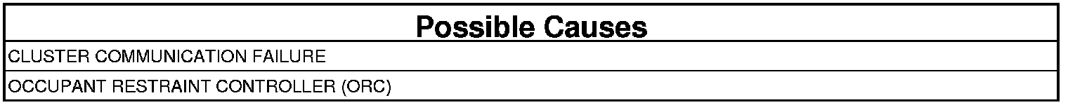 The Instrument Cluster broadcasts the airbag warning indicator status on the Bus. The Occupant Restraint Controller (ORC) expects this status message once every second. The ORC will set this DTC if the status message is not received for 10 consecutive seconds.