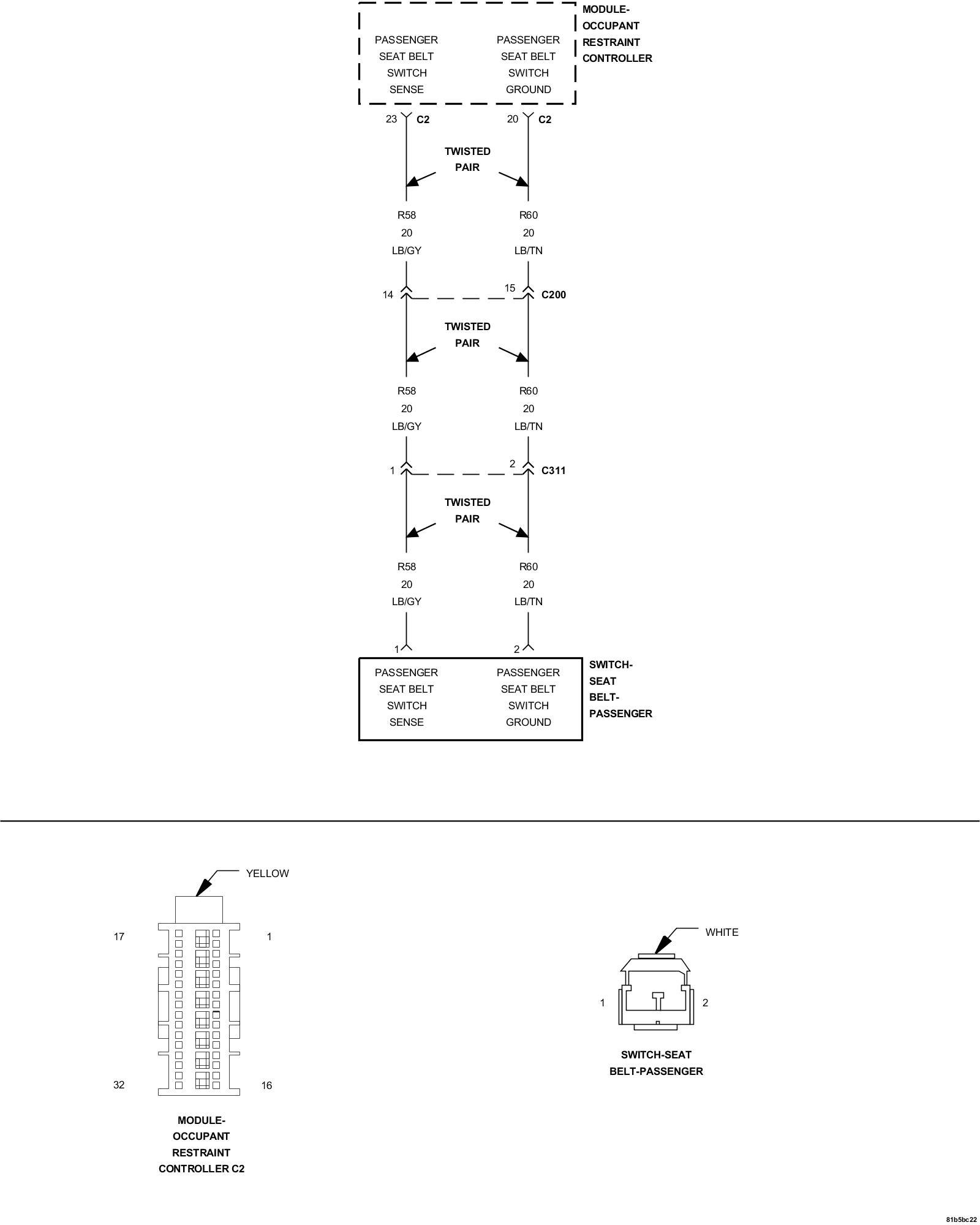- Repair the (R58) Passenger Seat Belt Switch Sense circuit for a short to the (R60) Passenger Seat Belt Switch Ground circuit.
