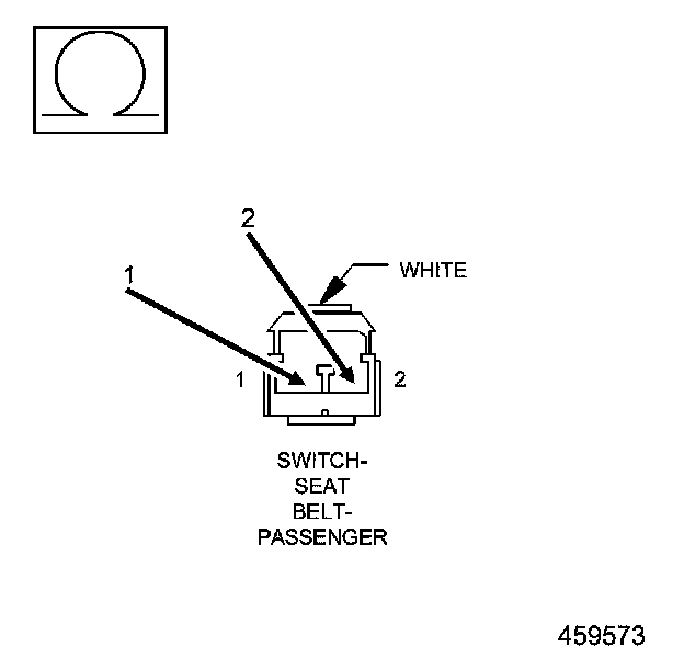 1. Measure the resistance between the (R58) Passenger Seat Belt Switch Sense circuit cavity 1 and the (R60) Passenger Seat Belt Switch Ground circuit cavity 2 at the Passenger Seat Belt Switch connector.