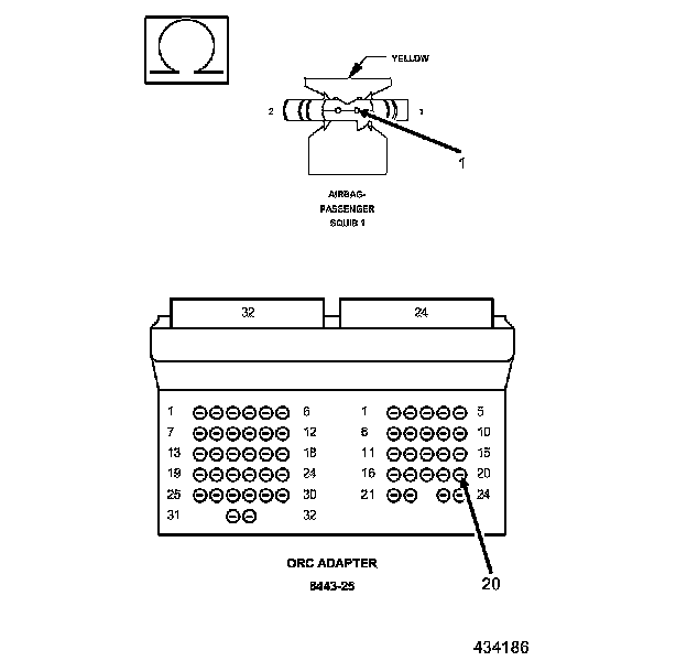 When powered, the Occupant Restraint Controller (ORC) sends a test current to the squibs to verify the integrity of the squib and wiring. These circuits are maintained in a "floating" configuration at the module (connected to neither power nor ground) as protection against inadvertent deployment. Use of the load tool in the tests below substitutes a suspect squib with a known good component. The use of the ORC connector adapter tool provide a test point as well as a method for opening the shorting bar connections within the harness connector.