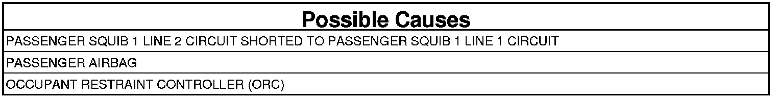 - Repair the Passenger Squib 1 Line 2 circuit for a short to the Passenger Squib 1 Line 1 circuit.