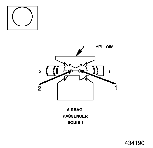 4. Measure the resistance between the Passenger Squib 1 Line 2 circuit and the Passenger Squib 1 Line 1 circuit at the Passenger Airbag Squib connector.