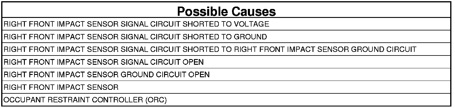 - Repair the Right Front Impact Sensor Signal circuit for an open.