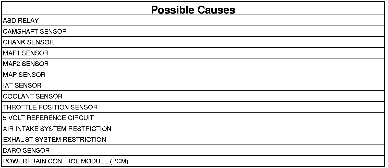 None of the above faults are active. The mass air flow value (g/s) of sensor 1 does not correlate with the estimated mass air flow value for sensor 1, or the mass air flow value (g/s) of sensor 2 does not correlate with the estimated mass air flow value of sensor 2, or the manifold pressure sensor value (kPa) does not correlate with the estimated manifold pressure value. One Trip Fault. Three good trips to turn off the MIL.