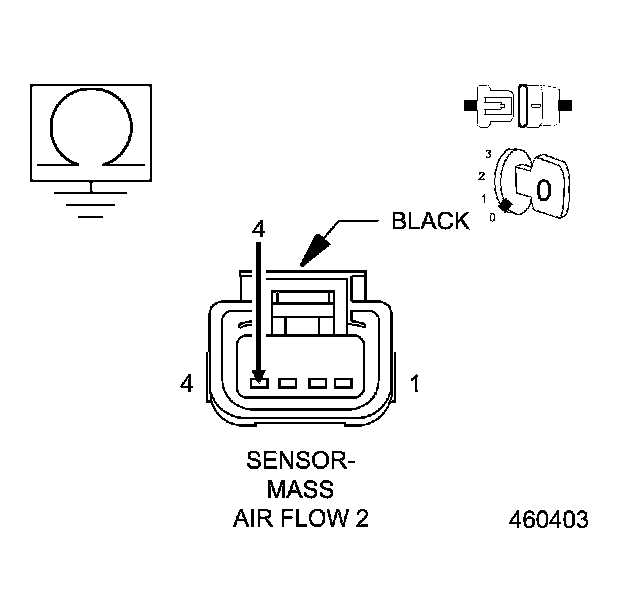4. Measure the resistance between ground and the (K462) IAT 2 Signal circuit in the Mass Air Flow Sensor 2 harness connector.