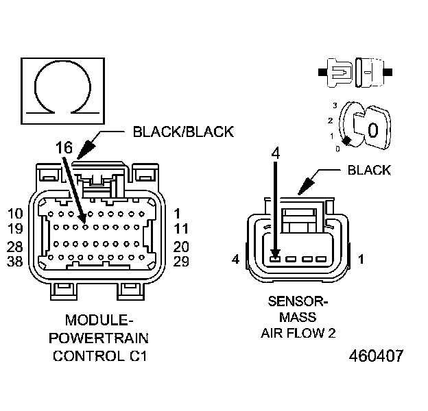 1. Using the wiring diagram/schematic as a guide, inspect the wiring and connectors between the Mass Air Flow Sensor 2 and the Powertrain Control Module (PCM).