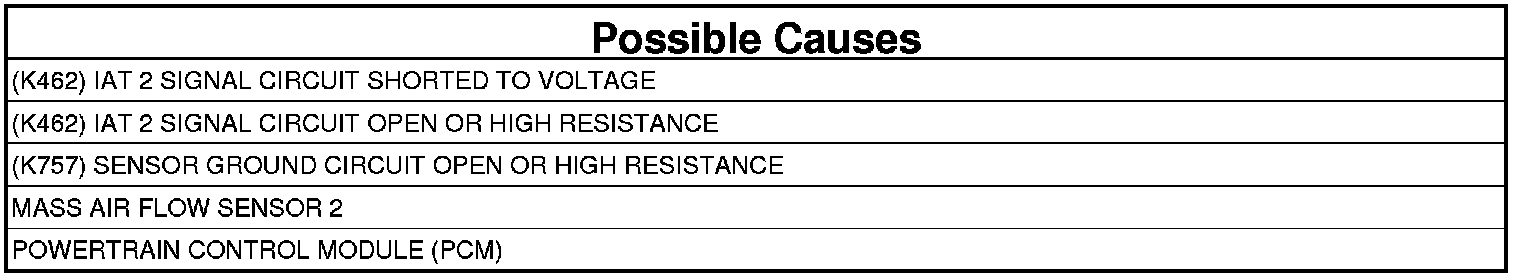 - Repair the (K462) IAT 2 Signal circuit for a short to voltage.