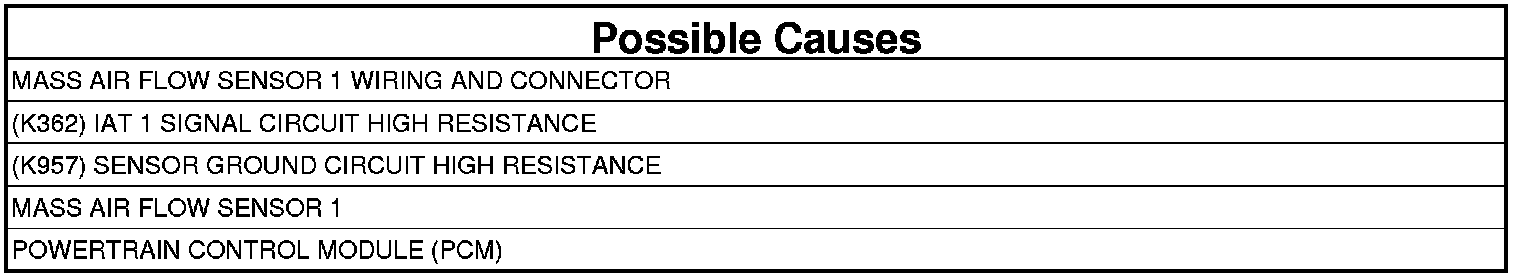 1. Using the wiring diagram/schematic as a guide, inspect the wiring and connectors between the Mass Air Flow Sensor 1 and the Powertrain Control Module (PCM).