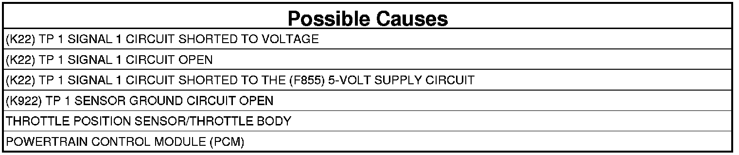 5. (K22) TP 1 SIGNAL 1 CIRCUIT SHORTED TO THE (F855) 5-VOLT SUPPLY CIRCUIT