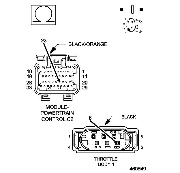 1. Using the wiring diagram/schematic as a guide, inspect the wiring and connectors between the Throttle Body and the Powertrain Control Module (PCM).