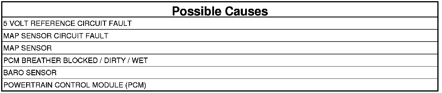 NOTE: Since the barometric pressure sensor is located inside the PCM, if the PCM is warm and gets cooled down quickly, this can result in a pressure drop inside the PCM which can cause this DTC to set. The driver should be asked if the fault occurred after the vehicle went through a carwash or driven through water.