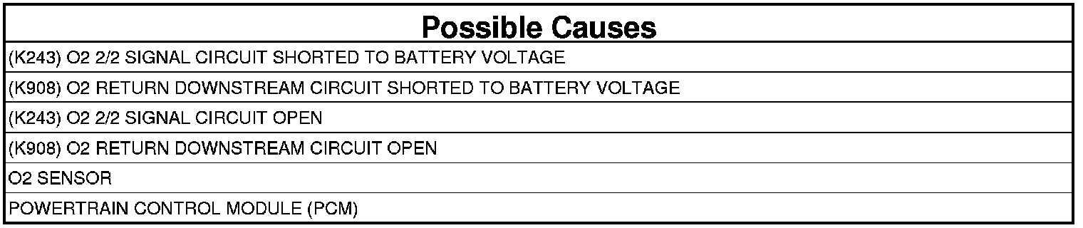 3. (K908) O2 RETURN DOWNSTREAM CIRCUIT SHORTED TO BATTERY VOLTAGE