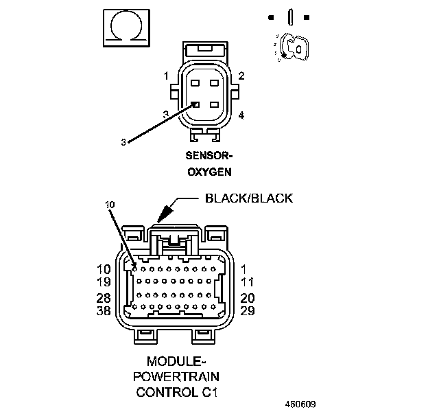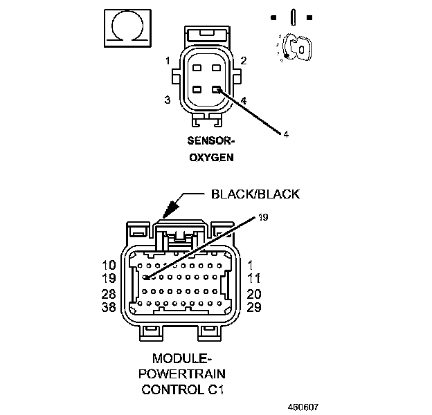 1. Measure the resistance of the (K908) O2 Return Downstream circuit from the O2 Sensor harness connector to the C1 PCM harness connector.