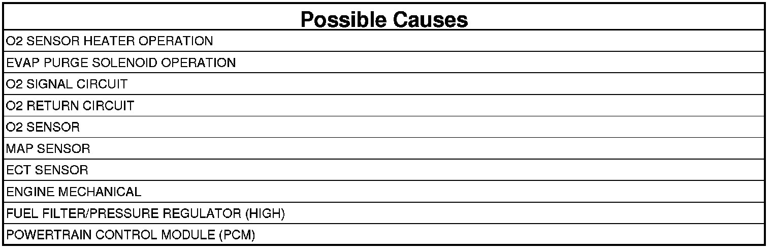 NOTE: After the repairs have been made, verify proper O2 Sensor operation. If all the O2 Sensor voltage readings have not returned to normal, follow the diagnostic procedure for the remaining O2 Sensors.