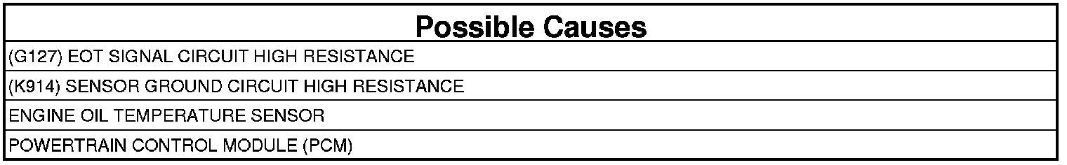 1. Using the wiring diagram/schematic as a guide, inspect the wiring and connectors between the Engine Oil Temperature Sensor and the Powertrain Control Module (PCM).