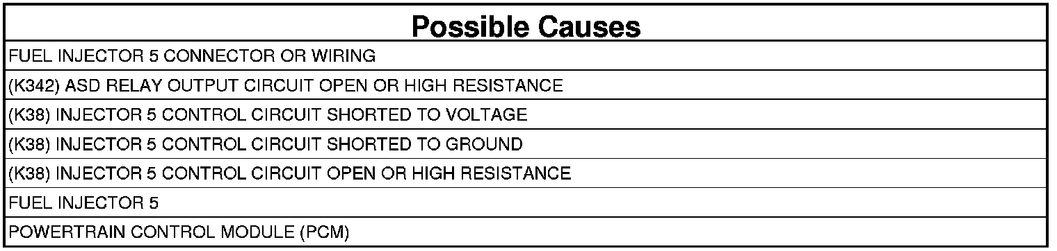 - Repair the (K38) Injector 5 Control circuit for a short to voltage.