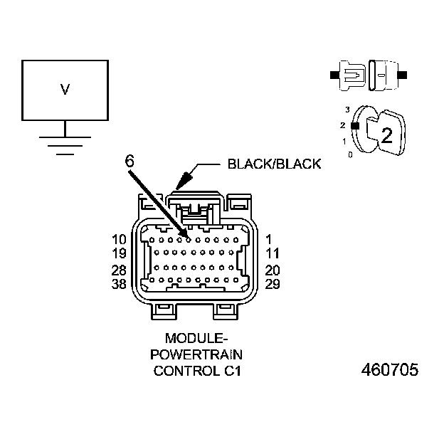 5. Measure the voltage of the (K38) Injector 5 Control circuit at the Powertrain Control Module (PCM) harness connector.