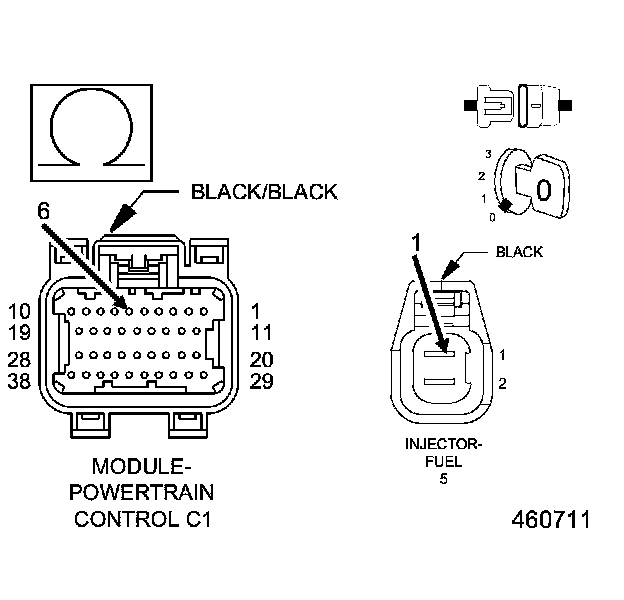 3. (K38) INJECTOR 5 CONTROL CIRCUIT SHORTED TO GROUND